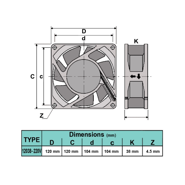 ابعاد: ۱۲۰×۱۲۰×۳۸ میلیمتر، مناسب برای نصب در تجهیزات صنعتی بزرگ