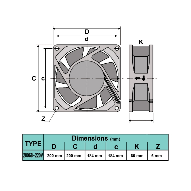 🌬️ فن بلبرینگی 20x20x6.8 220V | فن صنعتی بزرگ با یاتاقان بلبرینگی و عملکرد قدرتمند